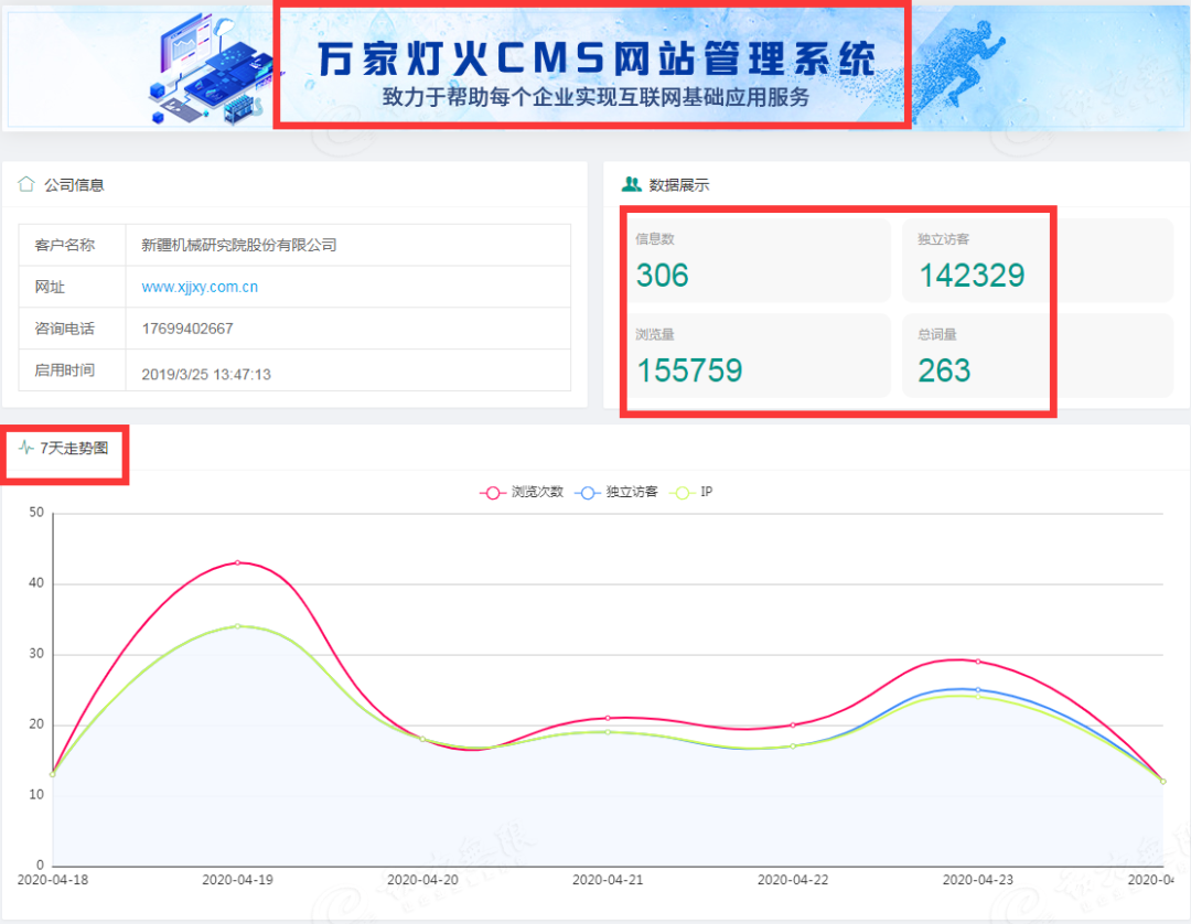 此次“萬家燈火CMS系統(tǒng)”的升級版,1. 在原有的基礎(chǔ)上,增加網(wǎng)站關(guān)鍵詞7天走勢圖以及網(wǎng)站關(guān)鍵詞在各大主流搜素引擎占比餅狀圖,將數(shù)據(jù)更加精細(xì)化,*化。