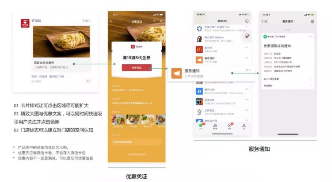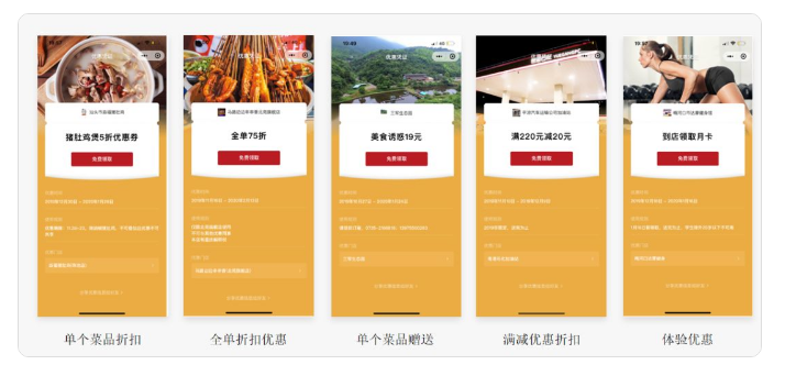此外,借助文案優(yōu)惠描述、門店定位顯示,多樣卡券派發(fā),門店可加強用戶到店消費的行為驅(qū)動杠桿。