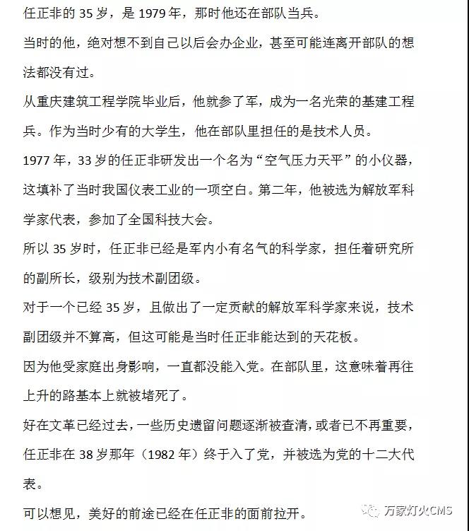 任正非35歲還是解放軍,43歲才創(chuàng)立華為;