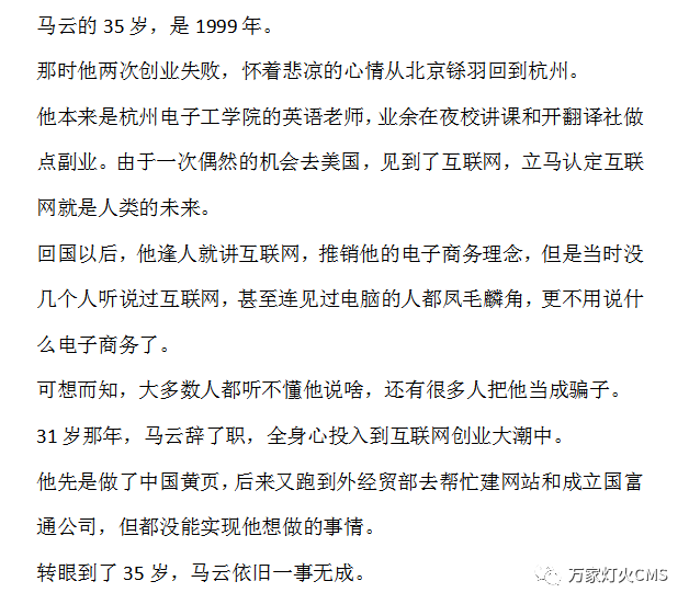 馬云35歲才創(chuàng)立阿里巴巴,此前兩次創(chuàng)業(yè),都以失敗告終;