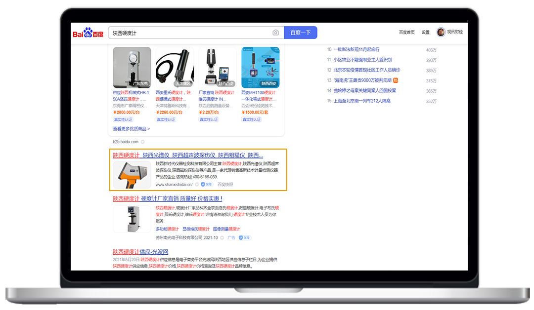 新時(shí)代關(guān)鍵詞:陜西硬度計(jì)、陜西光譜儀、陜西直讀硬度計(jì)、陜西石油硬度計(jì)、西安硬度計(jì)等,均在百度首頁(yè)展現(xiàn),準(zhǔn)確鎖定有需求的客戶(hù)。