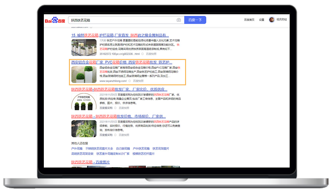 官網(wǎng)優(yōu)化:陜西鐵藝花箱、陜西PVC花箱、西安廣場花箱、西*鋁花箱、西安工程花箱等關鍵詞,穩(wěn)居百度首頁展示,助力巖之隆實現(xiàn)推廣轉化、*獲客。
