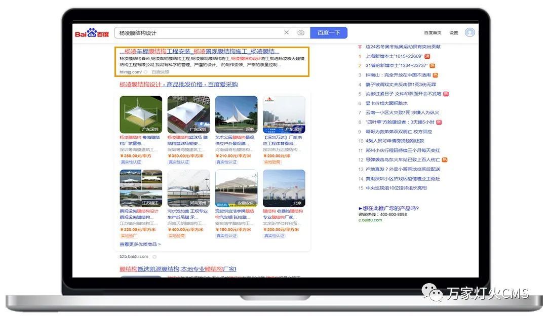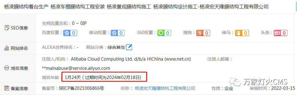 楊凌宏天隆膜結(jié)構(gòu)工程有限公司選擇與萬家燈火合作營銷型網(wǎng)站——萬家燈火CMS系統(tǒng)。網(wǎng)站上線后,不僅拓展了產(chǎn)品銷售渠道,節(jié)省了大量宣傳及運營成本,還收獲了不少流量訪客。