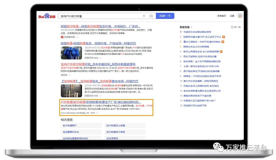 >>>分類信息:寶雞戶外救災(zāi)帳篷、渭南篷布等關(guān)鍵詞均在百度、360等搜索引擎平臺首頁展現(xiàn)。